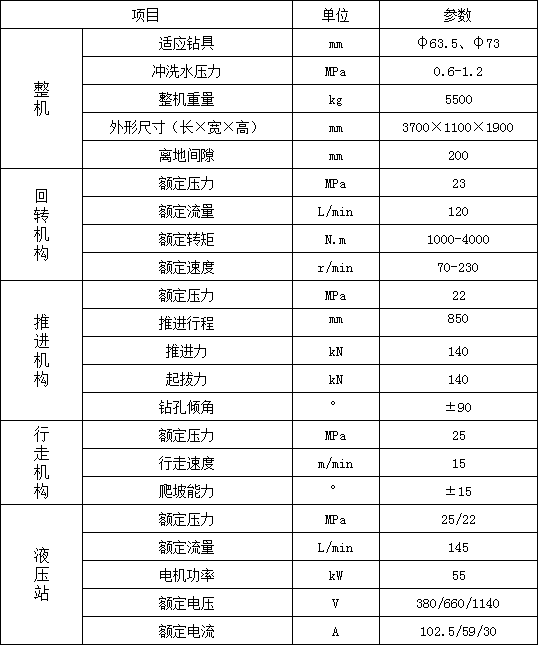 4. 采用雙泵系統,回轉和給進參數獨立調節,變量馬達可以進行無級調速,調高了鉆機對不同工況的適應能力;